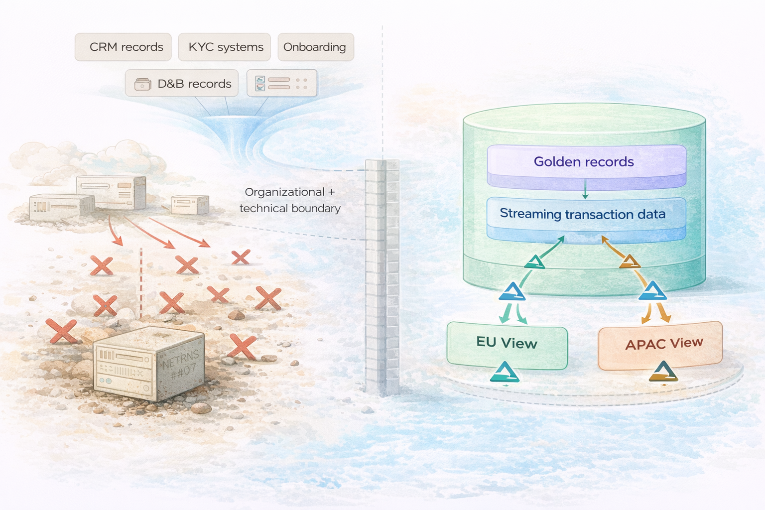 If you squint at this long enough, you realize it's a data architecture problem wearing compliance clothing. Each jurisdiction's compliance function becomes its own silo, with its own systems and its own version of the customer. And the boundaries between those silos are exactly where risk hides.