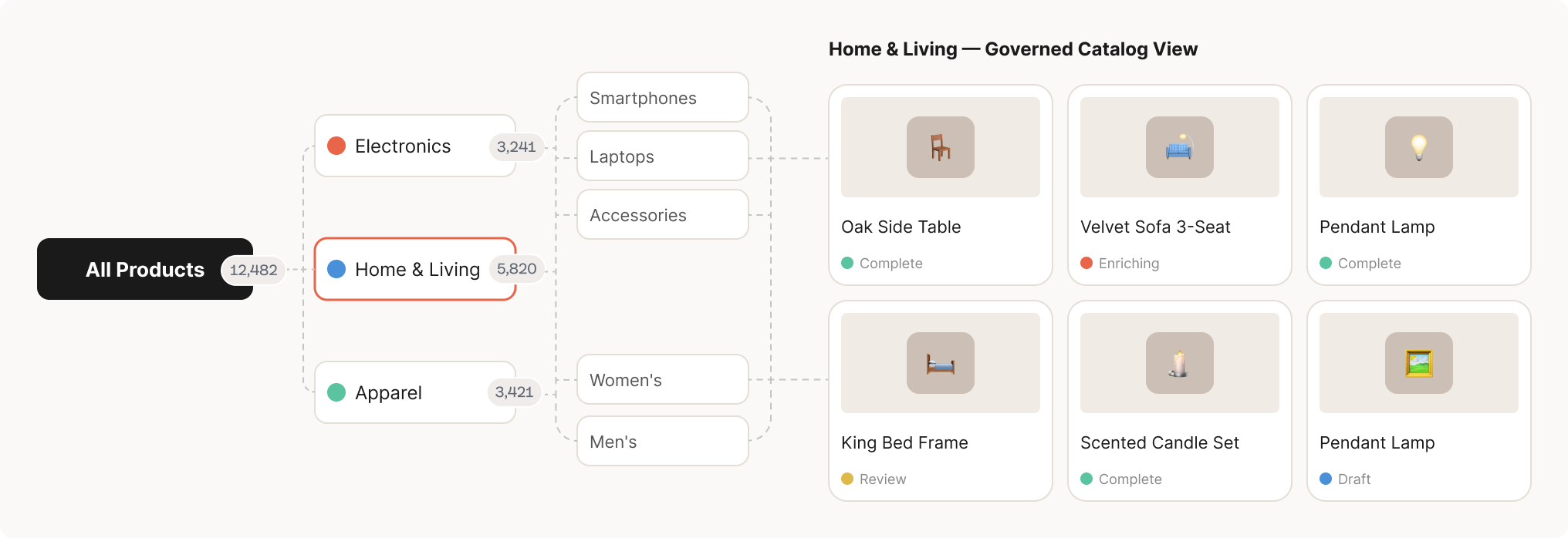 Bringing large, multi-category catalogs into a more governed structure so product data remains easier to manage, review, and operationalize.